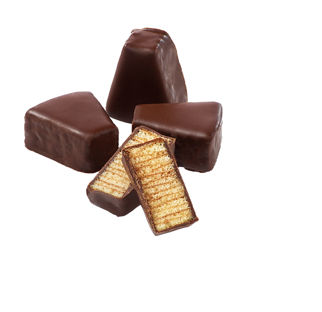 Unseren Baumkuchen, eine besondere Spezialität des Hauses Kuchenmeister, gibt es auch als kleine Spitzen für den Snack zwischendurch und das ganz ohne Alkohol. Nach traditionellem Rezept werden dafür dünne Teigschichten nacheinander vor offener Flamme gebacken und zum Abschluss mit feiner Zartbitterschokolade umhüllt.