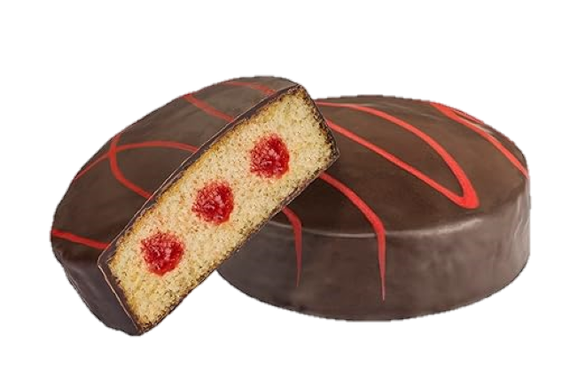 Zwei saftige Mini-Rührkuchen á 50 g treffen auf eine überraschend intensive, sauer-fruchtige Füllung. Umhüllt von dunkler kakaohaltiger Glasur mit leuchtend roten Akzenten entsteht ein einzigartiges Geschmackserlebnis – süß und saftig von außen, aufregend sauer im Inneren.